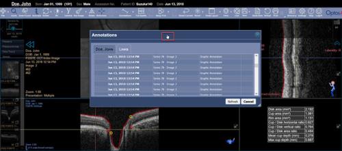You can quickly find the annotated images in a study (these are annotations added to the source image, not annotations added in OptosAdvance).